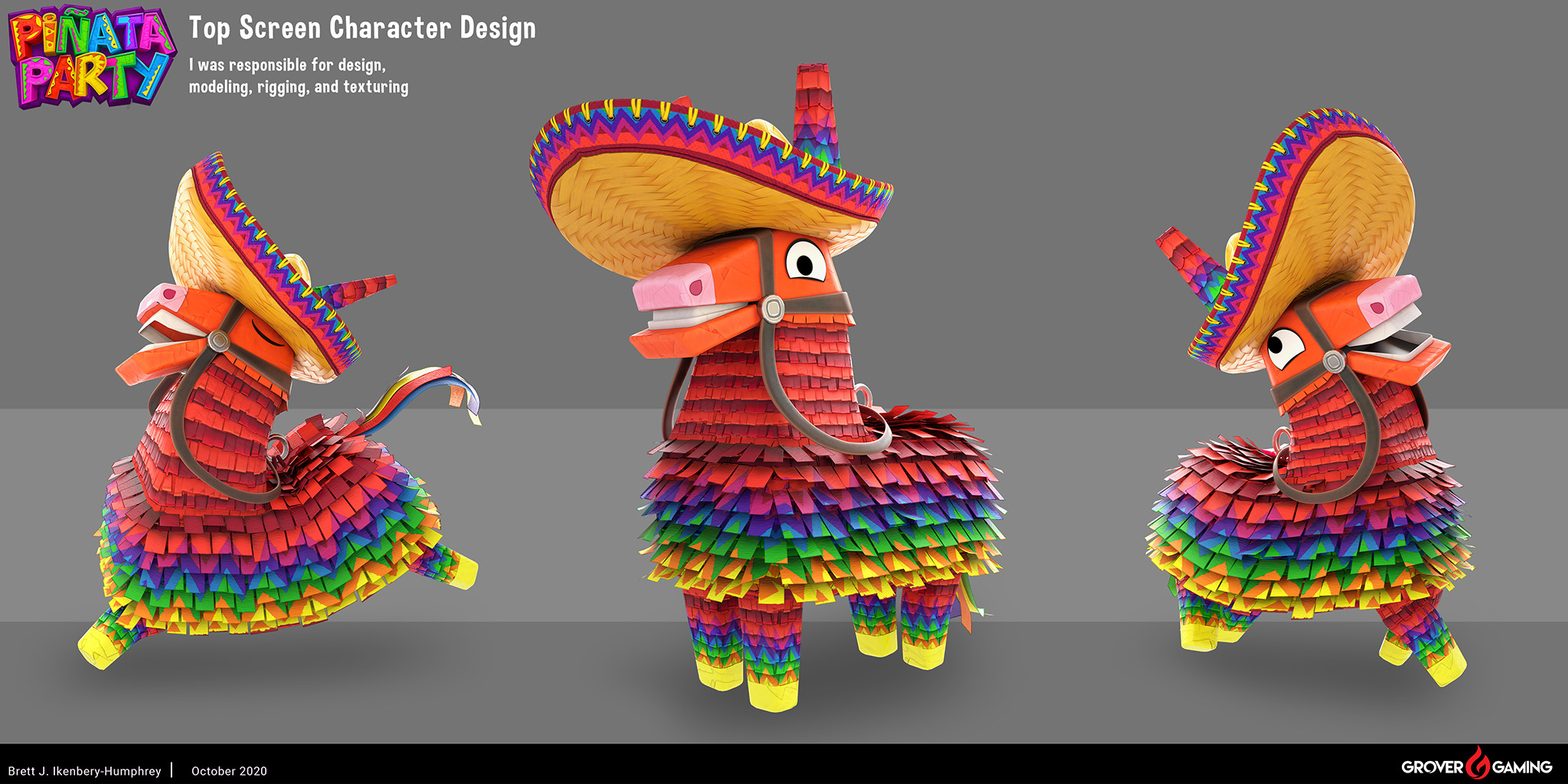 Main character design for Grover Gaming's Pinata Party game. It was a lot of fun taking this guy from design to final, and so cool to see it finally animated by the talented Alberto Tirado!